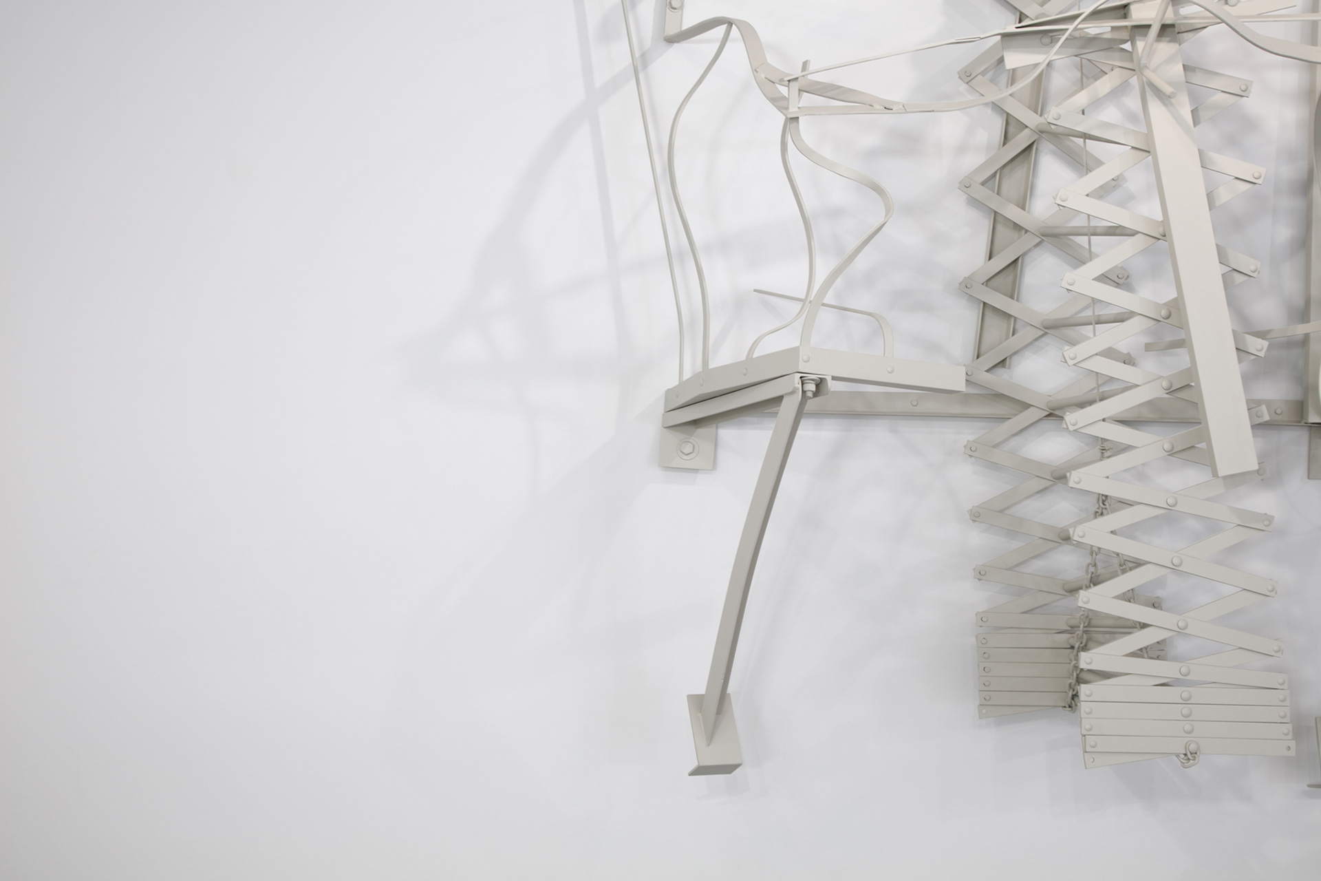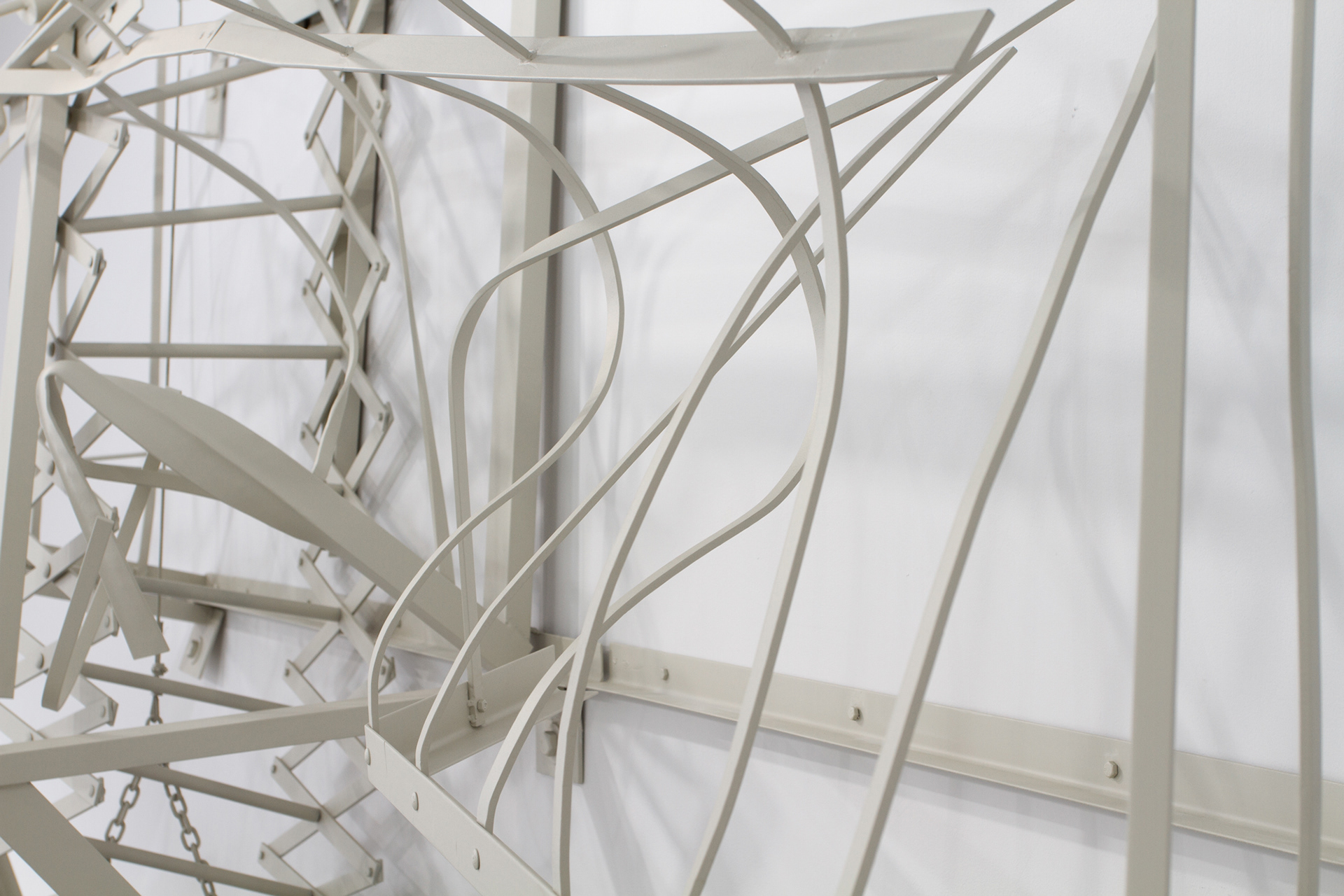 Each time the sculpture is exhibited the form is updated to account for any new damage on the original fire escape in Orosi, CA. This is the second installation.